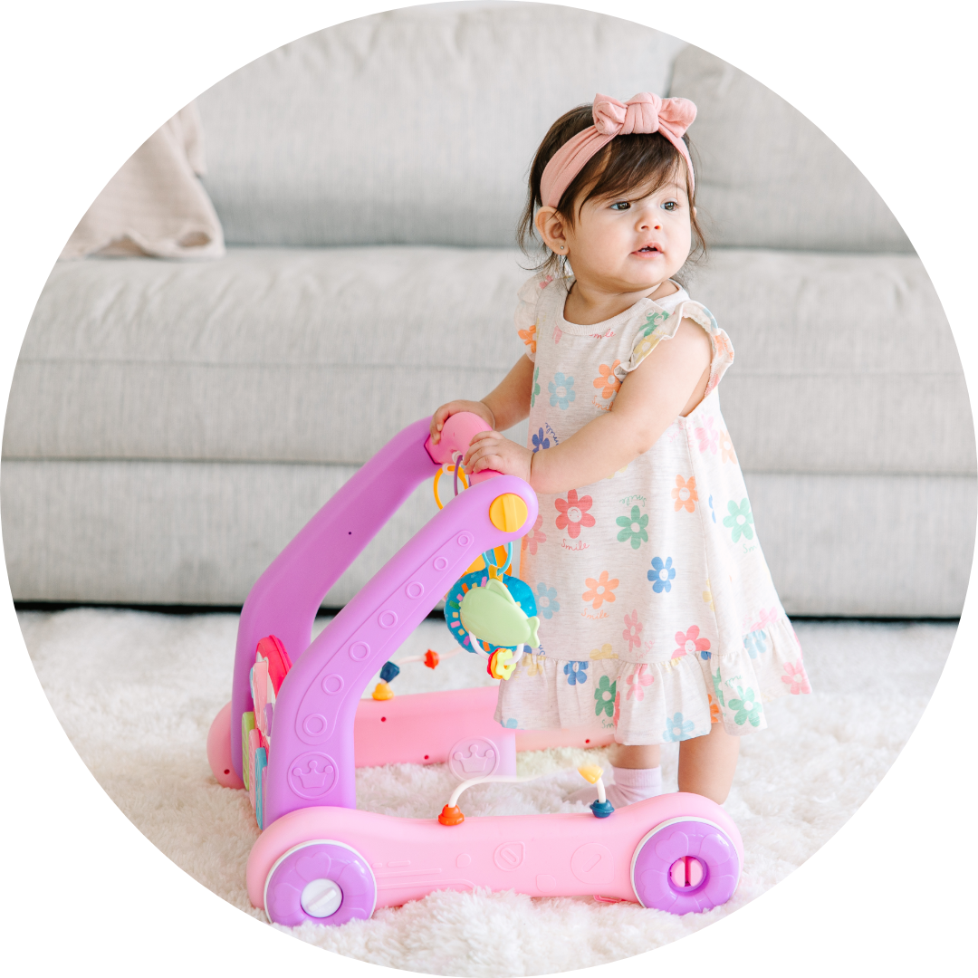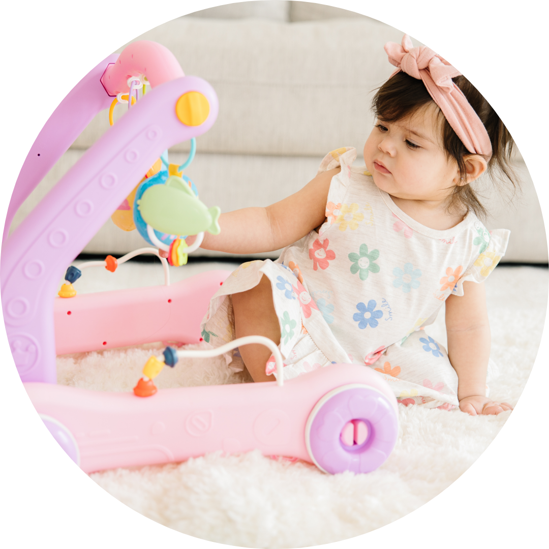 •  4 WAYS TO PLAY - Tummy time, sit and play, learn to walk, and take along. From tummy time to mini-marathoner, this toy grows with your baby!