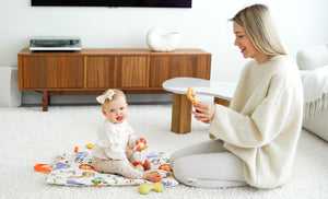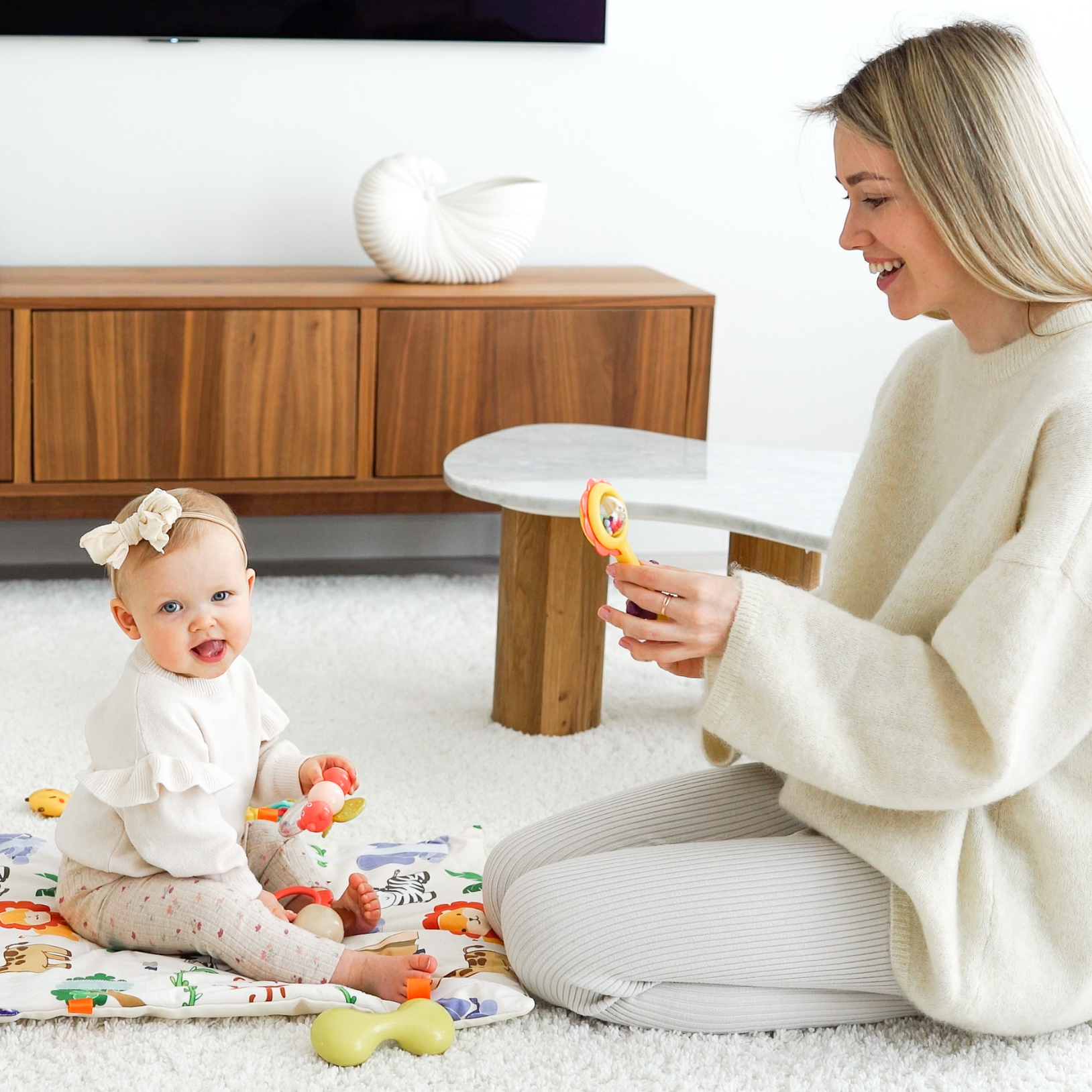 Spin, twist, and press—there are endless ways for little ones to explore and develop fine motor skills, plus enjoy the bonus of a soft, machine-washable tummy time mat for all their adventures!