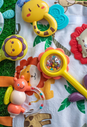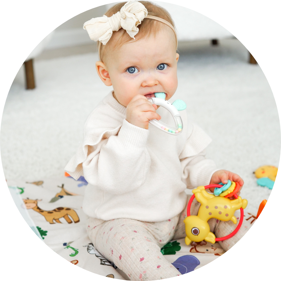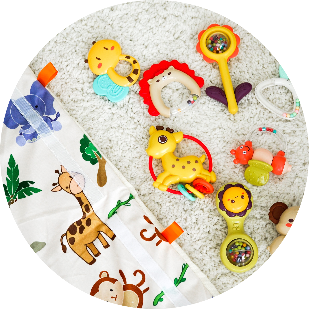 Featuring baby rattles and teethers made from food-grade silicone, with fun textures to soothe and massage those sore gums!