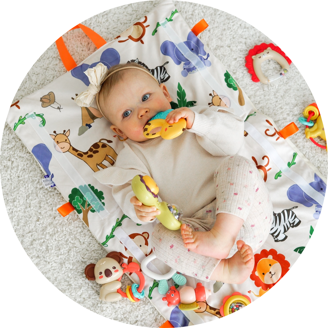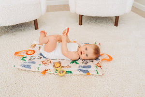 • TUMMY TIME MAT - Comes with a machine washable extra soft tummy time mat! Grab and go for any outing to the park, beach, or grandma's house!