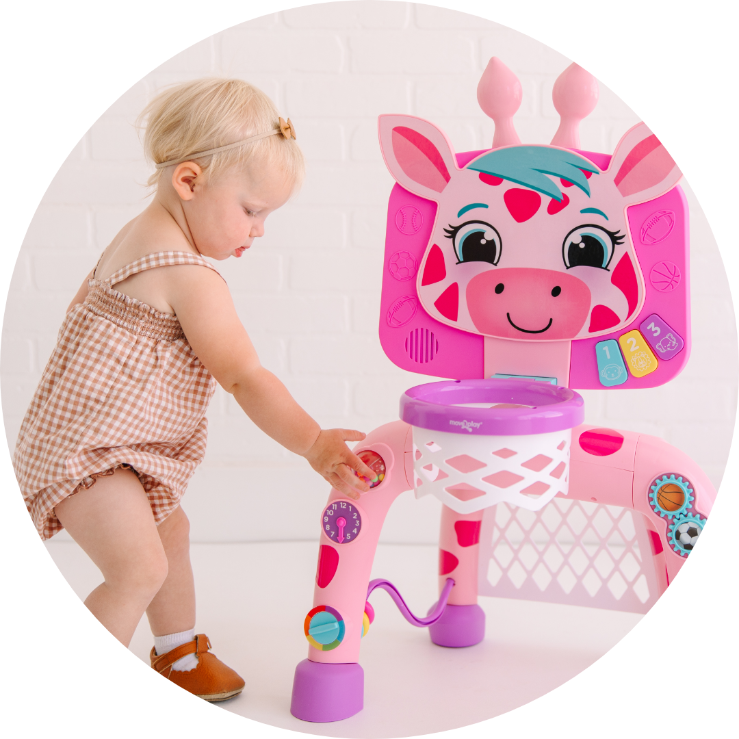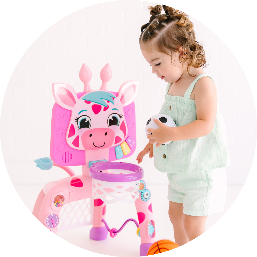 •  GIRAFFE-TASTIC FUN - Your little one will have a toweringly good time as they learn to slam dunks and smash free kicks with our uproariously interactive giraffe activity center.