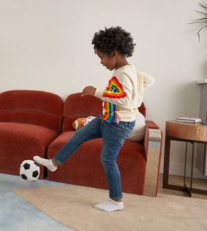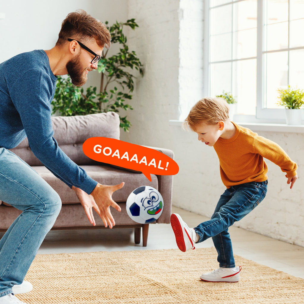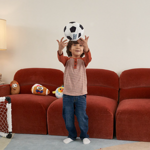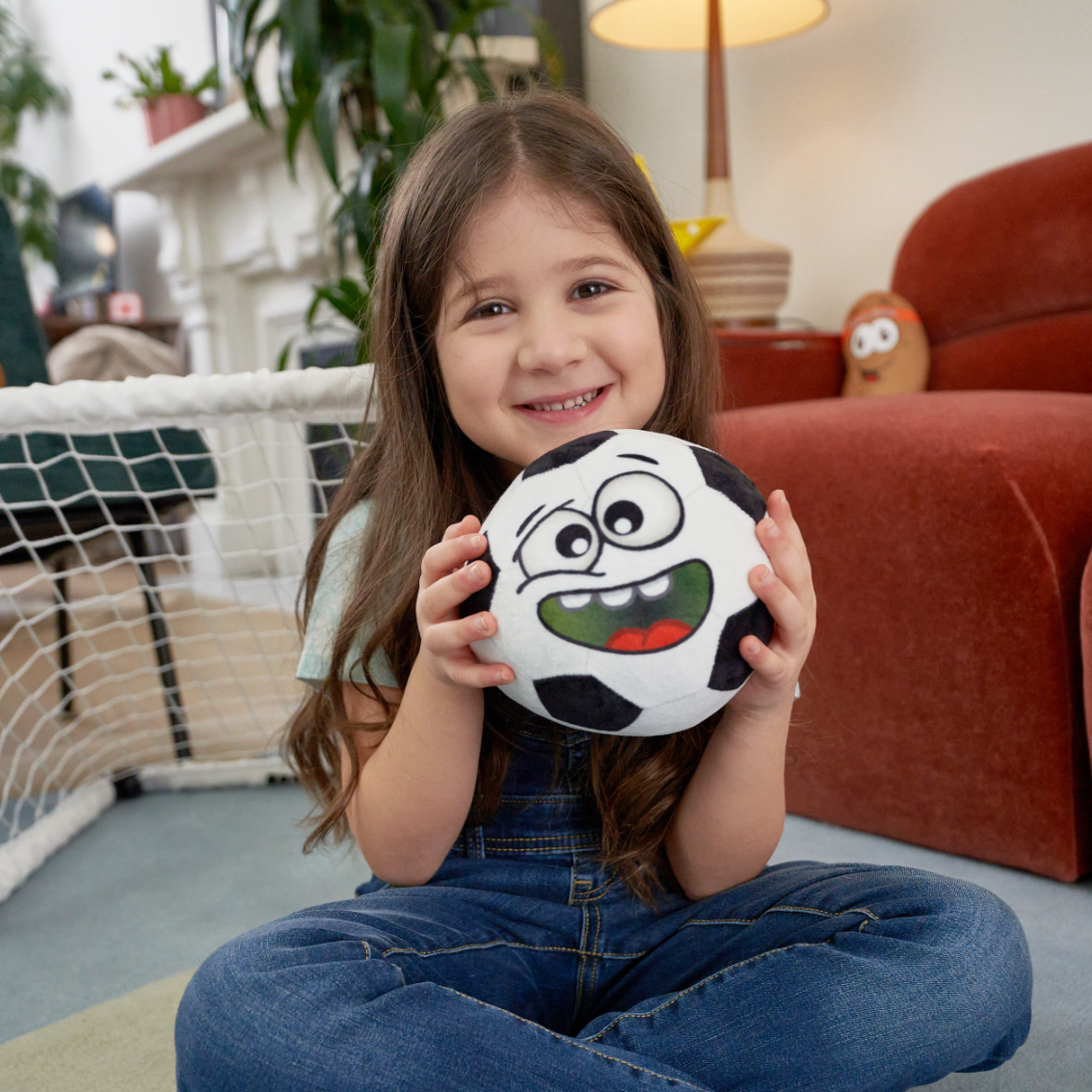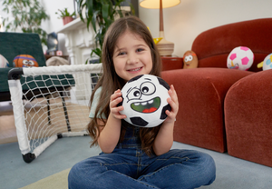 These kids soccer balls are made of machine-washable plush (softer than nerf foam) for INDOOR and OUTDOOR use.