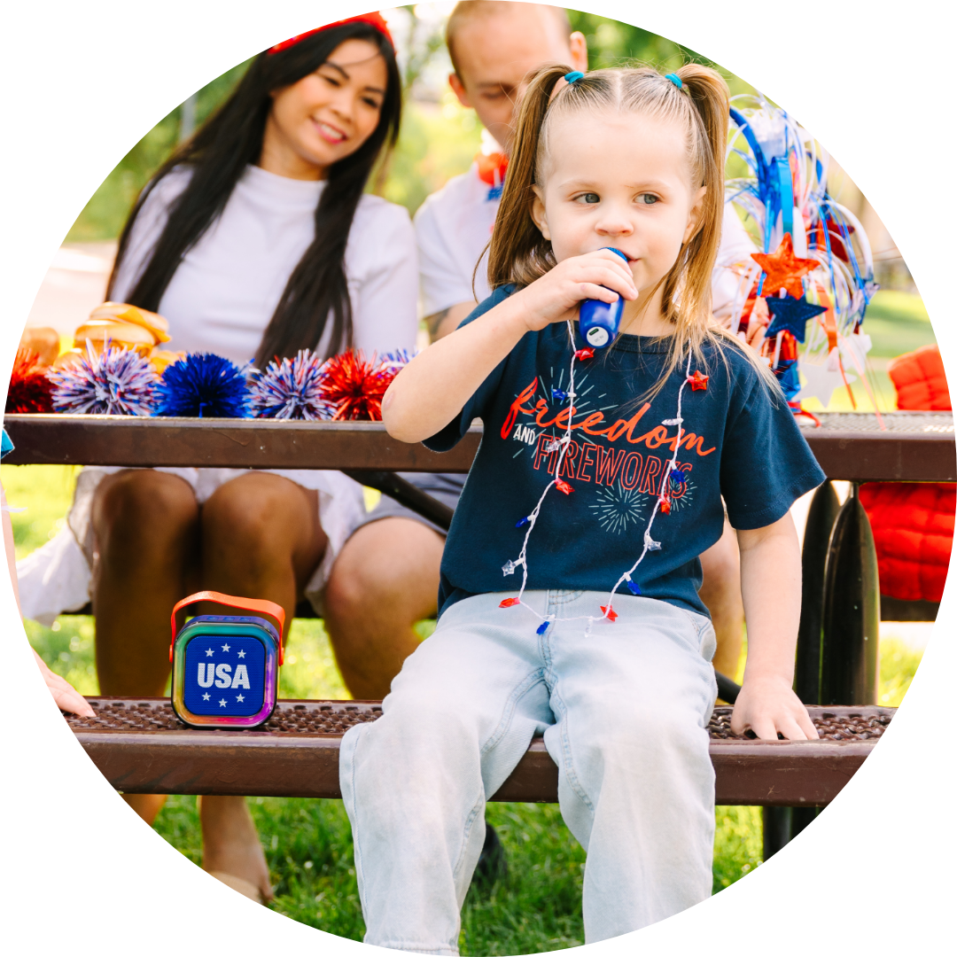 Bring the patriotic vibes! Pre-loaded with 6 sing-along American classics the whole family will recognize and love.