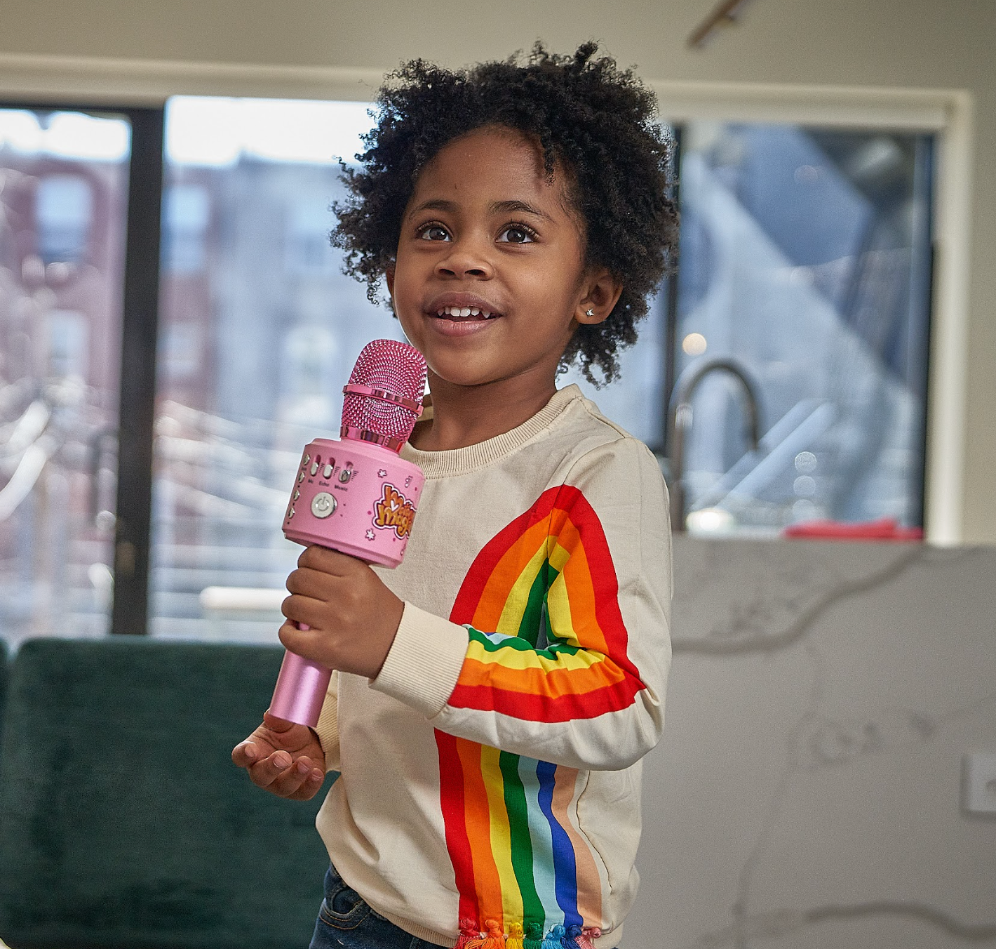 • PLAY ANY SONG – Bluetooth connection allows kids to sing along to any song. Functions as a Bluetooth speaker, so connect to kid’s favorite music app like Spotify, Apple Music, or YouTube