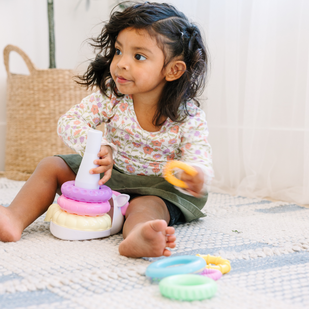 • UNICORN STACKING FUN - A classic baby toy, thoughtfully redesigned with an adorable unicorn companion. Perfectly crafted to support Montessori-inspired learning and development for your little one.