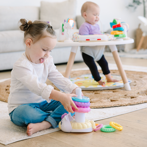 Celebrate milestones with this safe, BPA-free toy that encourages grasping, stacking, and hand-eye coordination.