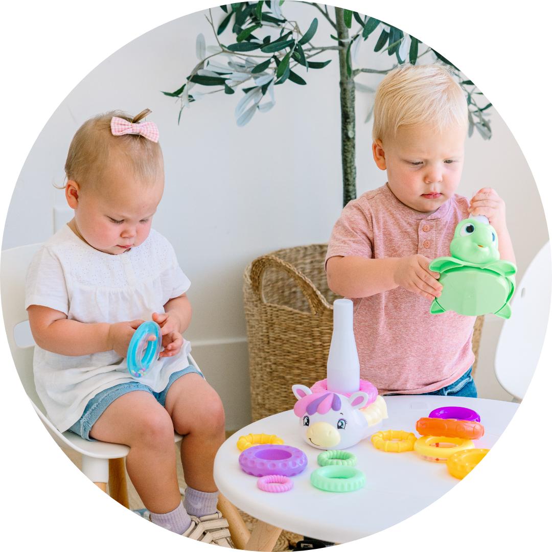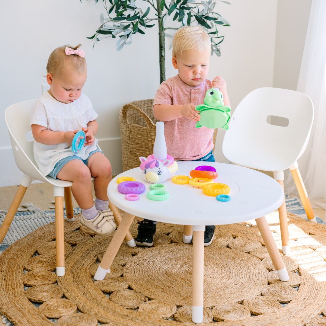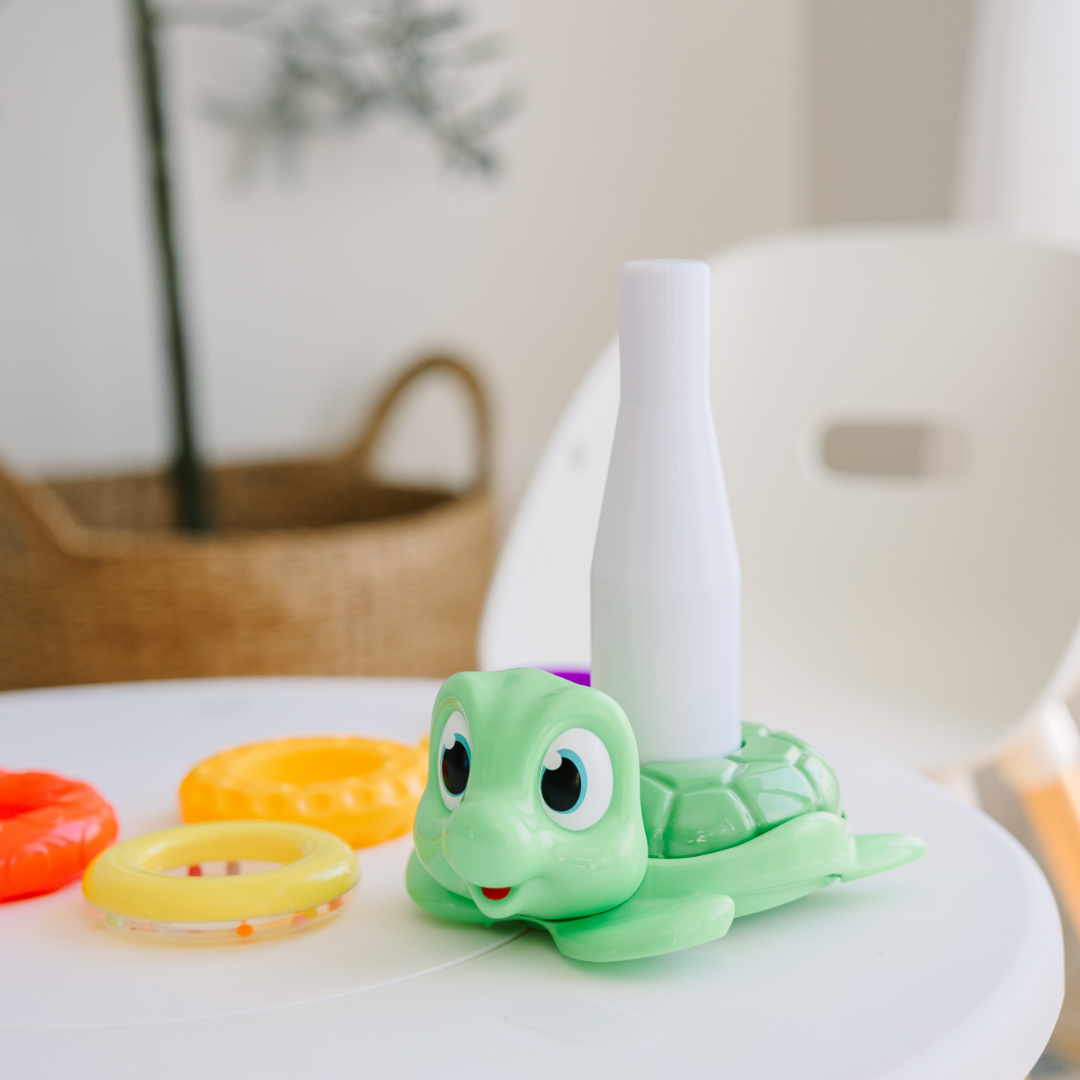 A classic baby toy, thoughtfully redesigned with an adorable turtle or unicorn companion, perfect for Montessori-inspired learning.