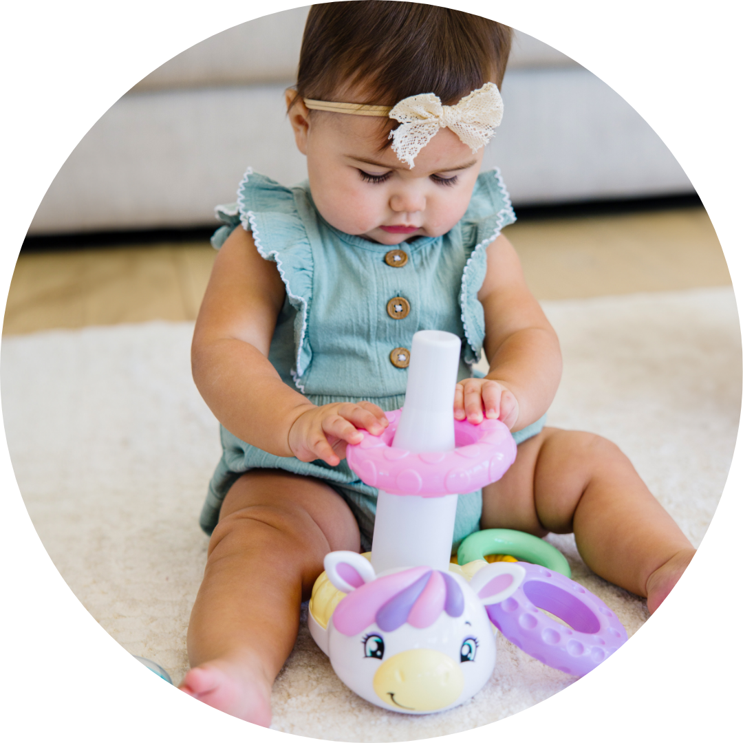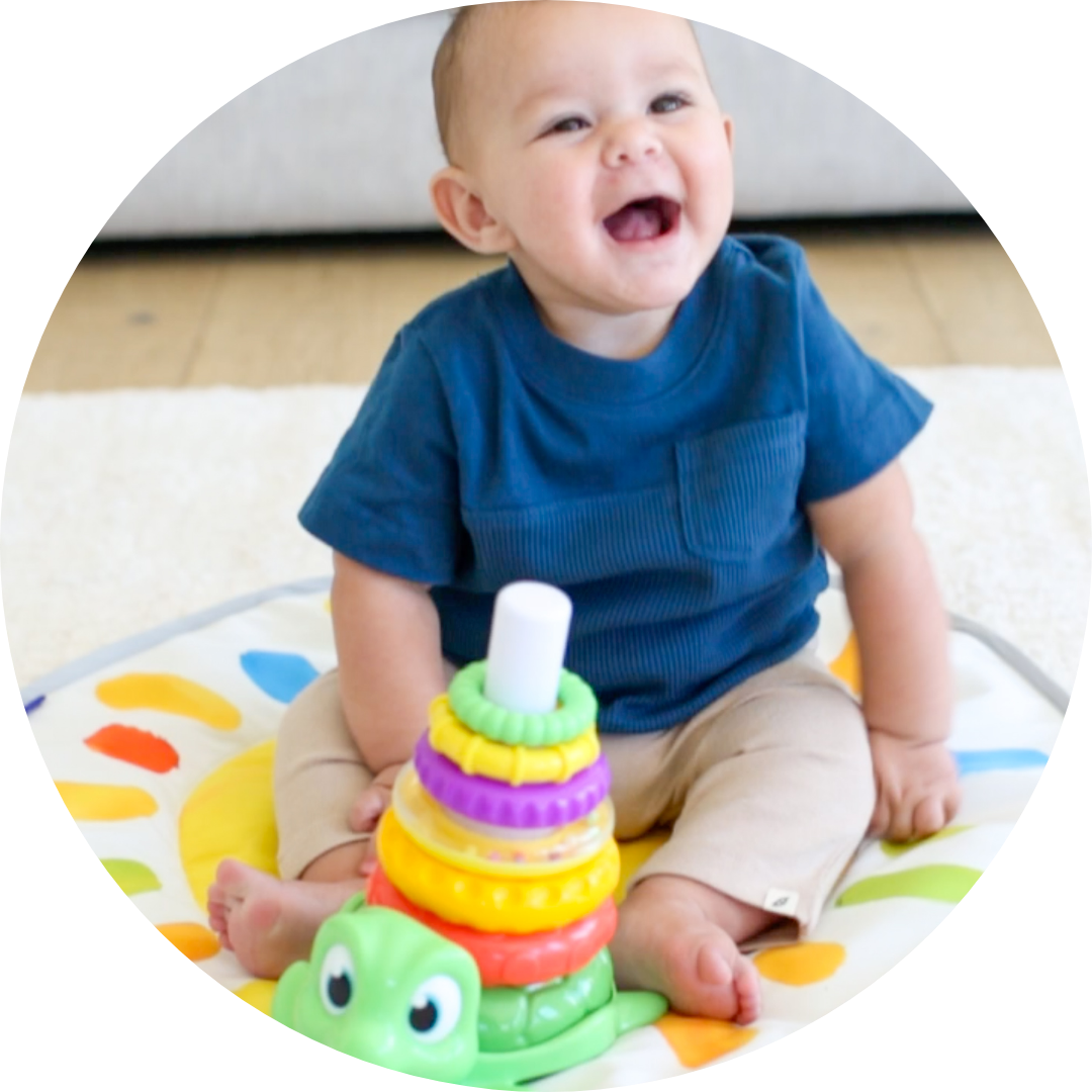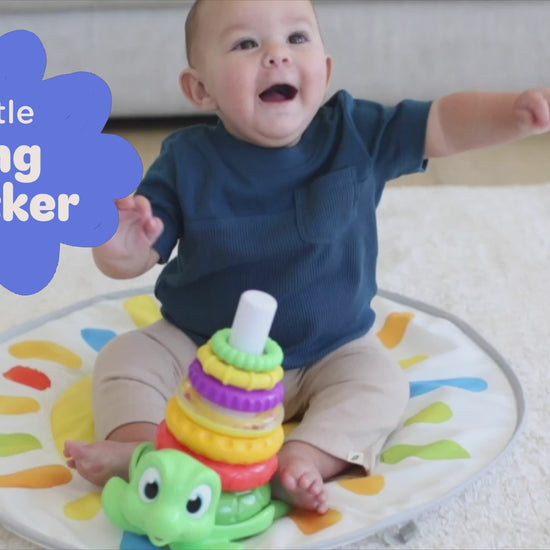 Celebrate milestones with this safe, BPA-free toy that encourages grasping, stacking, and hand-eye coordination.